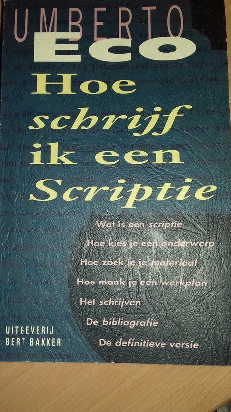In Hoe schrijf ik een scriptie? zet Umberto Eco op heldere en overzichtelijke wijze uiteen wat er allemaal komt kijken bij het schrijven van een scriptie. Stap voor stap beschrijft hij wat een scriptie is, hoe je een onderwerp moet kiezen, je werktijd moet indelen, bibliografisch onderzoek moet doen en het gevonden materiaal moet ordenen. Hij geeft veel praktische adviezen die het de student gemakkelijker zullen maken een scriptie niet alleen vol goede moed te beginnen, maar ook met plezier te voltooien.