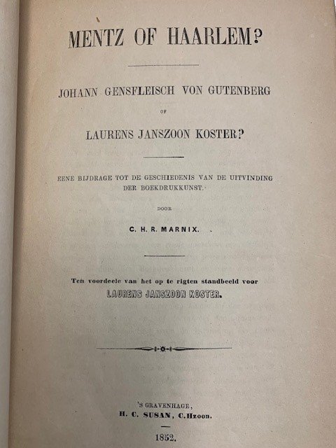 MARNIX, C.H.R., - Mentz of Haarlem? Johann Gensfleisch Gutenber