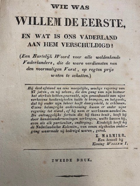 | Bijzonderheden: | [1840] half leather binding, gilt lettering on spine, contains: [Marmier], Wie was Willem de Eerste en wat is ons vaderland aanhem verschuldigd, Amsterdam, M.J. Hengeveld, 1841, 48pp. Losse gedachten over de grondwet en derzelver herziening, 's-Gr... |