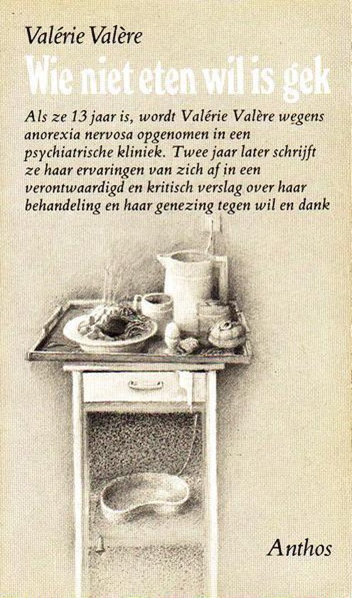 Wat kan ik me toch belachelijk aanstellen Ik kan niet meer hard lopen, niet meer huilen, nee, ik wil niet leven, heb ik dan nog niet geleerd dat de mensen geen goed woord overhebben voor hen die niet van het leven 'profiteren'? Ik ben al een lijk, ik ga langzaam tot ontbinding over. Zelfs mijn geest heb ik niet meer onder controle... Ze probeert de deur open te doen, ik zie door een kier haar gerimpeld, lachend gezicht... de stem van de zuster komt met haar de kamer in, ik zie in mijn verbeelding haar bril op haar neus dansen, haar borsten tekenen zich af onder haar witte schort. Ik moet ergens aan denken. Voor één keer komt ze op het juiste ogenblik. Met een bevelende stem jaagt ze dat smalle, scherpe gezicht weg terwijl ze haar een grote boterham geeft. Het resultaat is afdoende. Ik word er een beetje bang van, ik weet dat ze net als iedere andere dag een blad voor vier personen zal gaan halen, dat ze me zal smeken, zal proberen me te vertederen, zich boos zal maken, zal proberen me te chanteren, dat ze vriendelijk zal zijn en dat ze tot besluit de deur achter zich dicht zal slaan, waarna ik gebogen over mijn onaangeroerde boterhammen achterblijf met de koffie die zout is van mijn tranen. Onverdraaglijk dilemma... Het staat vast dat ik er niet uitkom zolang ik maar dertig kilo weeg. Maar ik kan niet! Alleen door de lucht al blijf ik nergens, mijn ogen gaan ervan prikken, ik word er misselijk van... Van binnen zit alles bij me in de knoop.' |