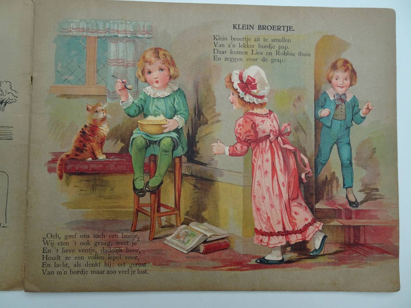 | Bijzonderheden: | zonder jaar; zachte kaft, karton; oblong; 32x25 cm.; ill. in zwart wit en gelithografeerde platen in kleur; ongepagineerd (10 p.). |