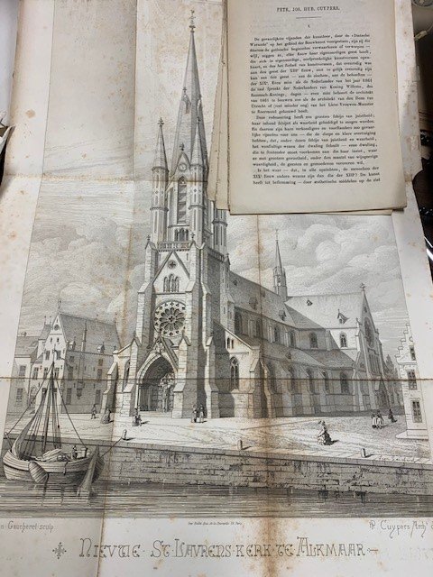 | Bijzonderheden: | Large engraved plate of the Laurenskerk in Alkmaar(Leon Gaucherel/H.P. Cuypers/Beillet) folded and foxed, with extract text concerning the churches developed by famous architect Cuypers. |