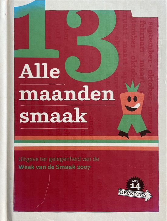 Vers Eerlijk, lekker en gezond: zo zouden alle maaltijden moeten zijn. Maar hoe weet je nu of iets vers, eerlijk, lekker en gezond is? Met alle 13 maanden smaak kom je en heel eind. Het boekje staat vol met eetweetjes, leuke intervieuws met smaakmakende personen, nuttige data en lekkere recepten. Het boekje is per maand ingedeeld en geeft extra informatie over het product dat in die maand speciale aandacht verdiend. Per maand staat een Nederlandse provincie centraal, die haar bijzondere streekproducenten presenteert. Met seizoenskalender die je vertelt welke producten van welk seizoen zijn.Ook is er een extra 13e maand feestelijkheden aan toe gevoegd.