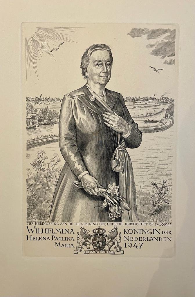 | Titel: | Modern portrait print, engraving | Queen Wilhelmina, published 1947, 1 p. |