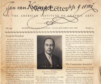 | Titel: | KALLIGRAFIE In: News-Letter of the American Institute of Graphic Arts, Nr. 53, July 1939. |