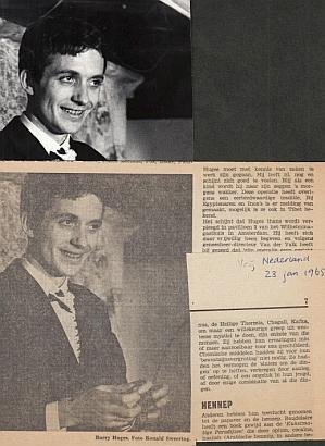 18.0 x 12.5 cm. On the back the rubberstamp of photographer Ronald Sweering. A small crease. In Provo atmosphere, Bart Huges (1934-2004), a medical doctor in training, drilled a hole in the top of his head with a dental drill on January 6, 1965, because he was convinced that this would expand his consciousness. This photo shows Huges in a dark costume; laughing, he is apparently arguing. With newspaper clipping of January 23, 1965, an article by A.E. Bayer: 'Barry Huges wants to expand his consciousness. On to the Third Eye' using this photo, with the caption again 'Barry Huges', confusing Bart with a well-known football player. Huges' name is correct in the text.