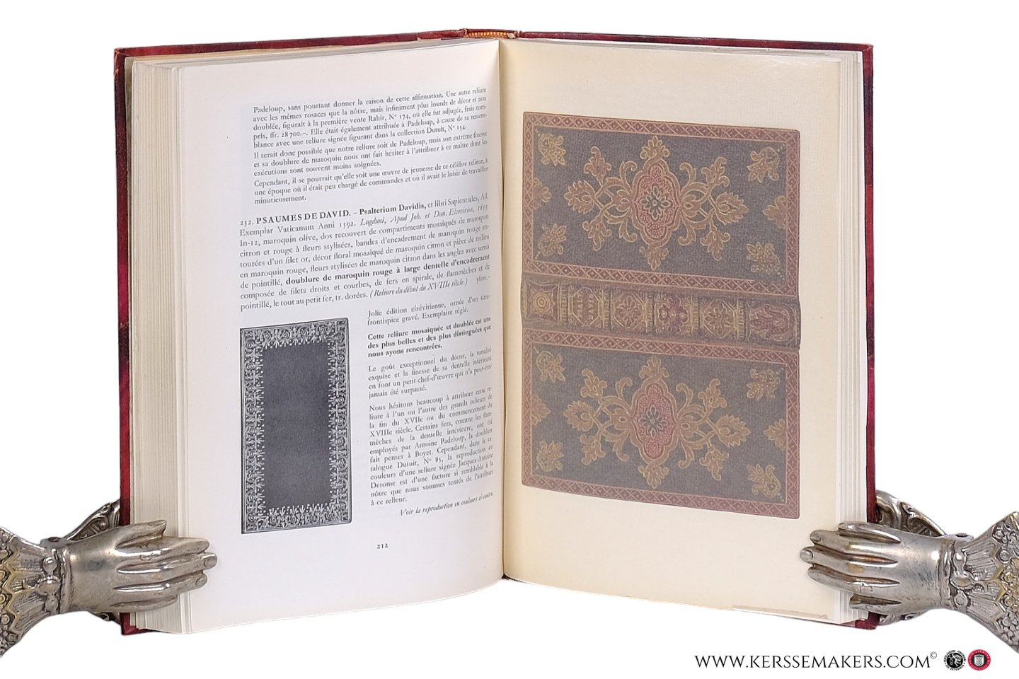 covers with decorated paper; decorated endpapers (a bit warpled). Original illustrated wrappers preserved. 284,(ii) pp. With 10 colourplates (incl. frontispiece) with protecting tissues, many illustrations and black and white plates in text: for the greater part depicting bookbindings. Printed in 1350 copies. The first catalogue of the series "Très beaux livres" numbered 1-7 bij Nicolas Rauch and E. Engelberts. Nice copy, in a nice binding about 1950.
