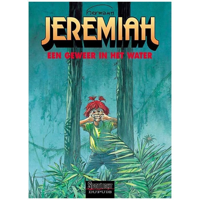 "Terwijl Jeremiah en Kurdy vluchten voor een bende dronken motorrijders, komen ze Jason tegen, die op de bodem van een put ligt. In ruil voor hulp, stelt Jason hun voor zich bij hem, diep in het moeras, schuil te houden. Het lijkt een eerlijke deal, maar de familie van Jason is minder enthousiast. Onze vrienden krijgen te maken met Marge, de nymfomane moeder, die door haar immer waakzame vierde echtgenoot nauwlettend in het oog wordt gehouden. En ook nog met Todd, Willie en Shank, zijn zwijgzame en agressieve broers, die het niet zo voorzien hebben op bezoekers. Te meer daar Jeremiah en Kurdy midden in een familievete terecht zijn gekomen. Een vete, waarbij een koffer vol geld, die Jason heeft gestolen, een belangrijke rol speelt. Voor Jasons broers is de tijd om tot een vergelijk te komen voorbij. En levende getuigen zijn al helemaal niet gewenst... Een verstikkende atmosfeer Bij de terugkeer van ""Jeremiah"" neemt Hermann ons met Een geweer in het water mee naar een verstikkende omgeving. Jeremiah en Kurdy zijn de gijzelaars van een gezin waar het op elk moment tot een uitbarsting kan komen en dat alleen nog bij elkaar blijft door hebzucht en begeerte. In deze realistische stijloefening schildert Hermann een groep mensen in verval. En hij doet dit op zijn bekende, gruwelijk effectieve manier. Een verhaal, ondersteund door verbijsterende beelden. Een album van een van de allergrootsten van de strip."
