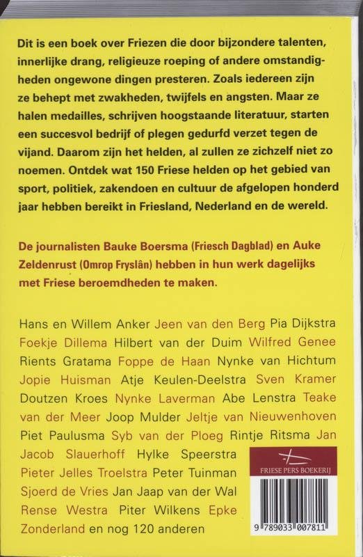 Doutzen Kroes, Foppe de Haan, Pieter Jelles Troelstra en Abe Lenstra zijn maar vier van de 150 Friese helden die worden beschreven in deze uitgave. Dit boek is een compleet vernieuwde en uitgebreide editie van 101 Markante Friezen van de twintigste eeuw. De samenstellers zochten 49 ‘nieuwe’ helden uit en herschreven de bestaande verhalen. De foto’s zijn deze keer in kleur. Een aantrekkelijk publieksboek! |