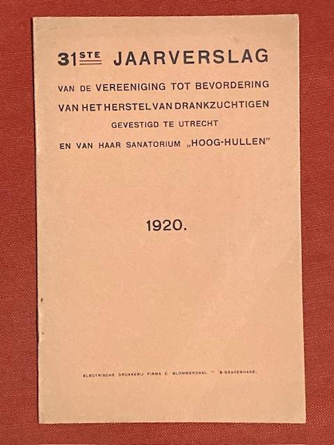 | Titel: | 31ste jaarverslag van de Vereeniging tot Bevordering van het Herstel van Drankzuchtigen gevestigd te Utrecht en van haar sanatorium "Hoog-Hullen" 1920 |
