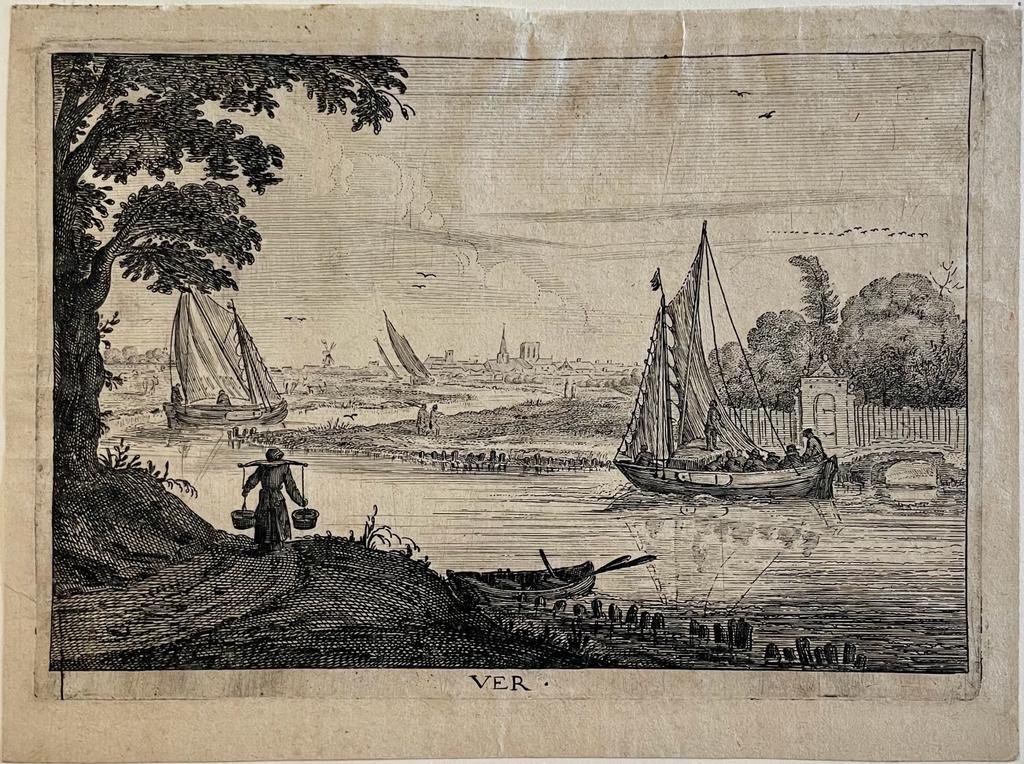 | Bijzonderheden: | View on a river with sailing boats. A large tree on the foreground left, a woman carrying basins on her shoulders.Titled at bottom center: VER.Unsigned, on late seventeenth century paper, or early 18th century.On the passepartout is suggested an a... |
