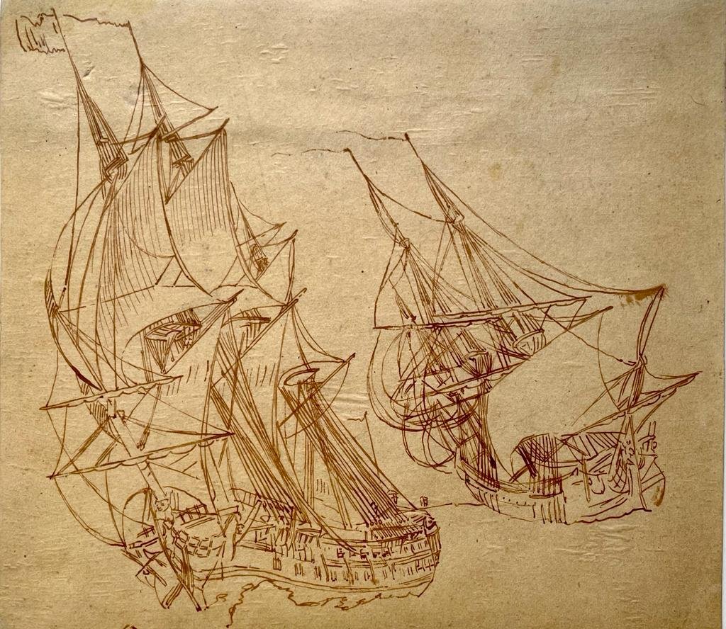 | Titel: | Antique drawing | Two sailships, dated 1777, 1 p. |