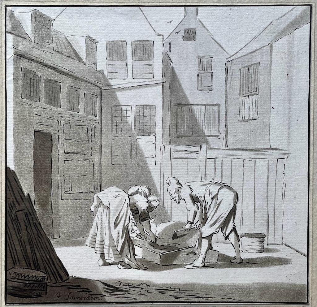 | Bijzonderheden: | View of a court-yard surrounded by houses, with three figures slaughtering a pig.Facsimile of a drawing by Pieter Saenredam (formerly attributed to Jan Saenredam); from a series of forty-six facsimiles (published in separate sets between 1765-1787... |