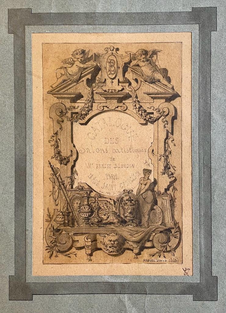 | Titel: | Antique drawing | Design for a frontispiece of a catalogue E. Blondin, 1863, 1 p. |