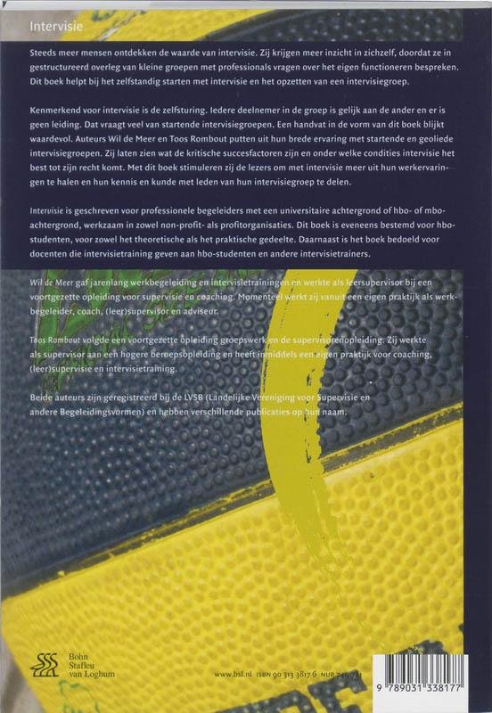 Steeds meer mensen ontdekken de waarde van intervisie. Zij krijgen meer inzicht in zichzelf, doordat ze in gestructureerd overleg van kleine groepen met professionals vragen over het eigen functioneren bespreken. Dit boek helpt bij het zelfstandig starten met intervisie en het opzetten van een intervisiegroep.Kenmerkend voor intervisie is de zelfsturing. Iedere deelnemer in de groep is gelijk aan de ander en er is geen leiding. Dat vraagt veel van startende intervisiegroepen. Een handvat in de vorm van dit boek blijkt waardevol. Beide auteurs putten uit hun brede ervaring met startende en geoliede intervisiegroepen. Zij laten zien wat de kritische succesfactoren zijn en onder welke condities intervisie het best tot zijn recht komt. Met dit boek stimuleren zij de lezers om met intervisiemeer uit hun werkervaringen te halen en hun kennis en kunde met leden van hun intervisiegroep te delen.