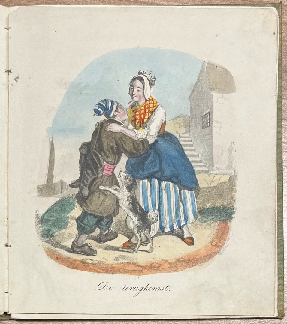 | Meer info: | Bound in embossed green linen with flower decoration in gold, 13.8 x 12.1 cm. Lightly stained/discolored, fragile. Colored plates detached but complete.Spine with flower decoration in gold and the text: Tijdswinst. |
