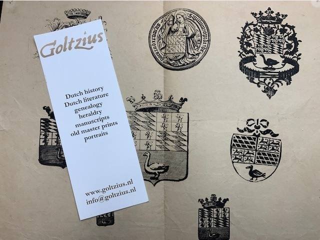 | Meer info: | Goes: plate with 8 woodcut coats of arms of the city of Goes (Zeeland) 19th century. 21x27cm minor cuts and bruises to edges. Some smudging to the plate margins, folded. |