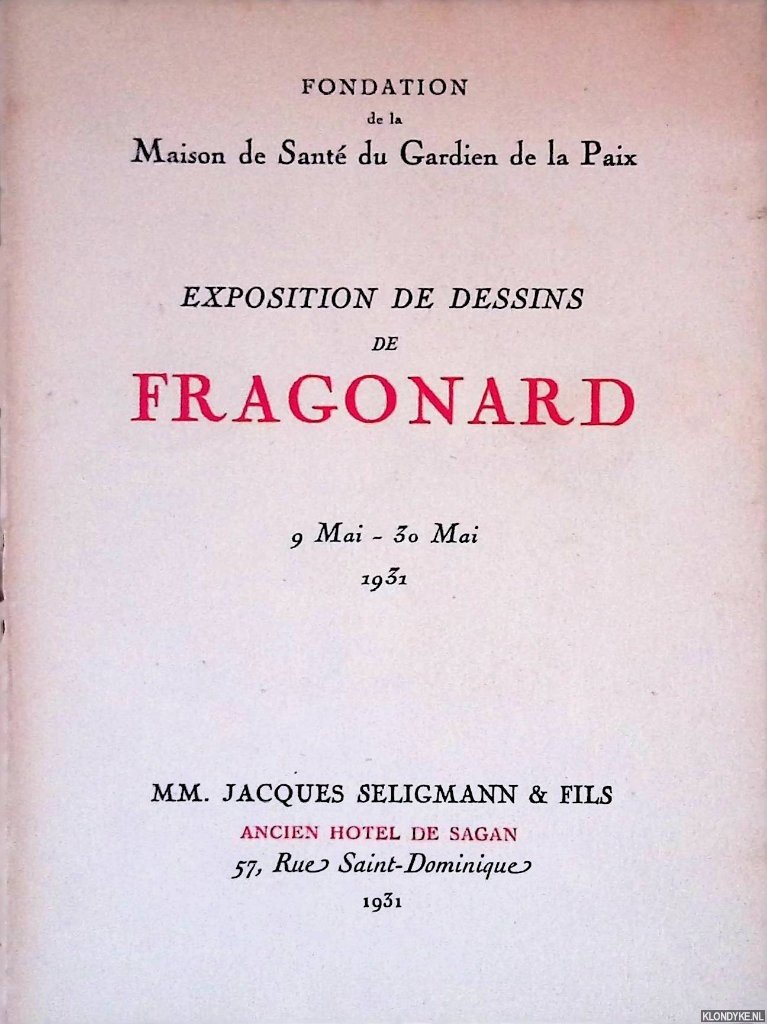 | Titel: | Exposition de dessins de Fragonard: 9 Mai - 30 Mai 1931 |