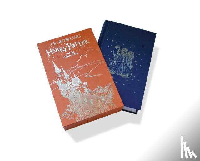 Annotatie A gorgeous gift edition of }Harry Potter & The Goblet of Fire{ with line art by Jonny Duddle etched in foil on the cover and slipcase |