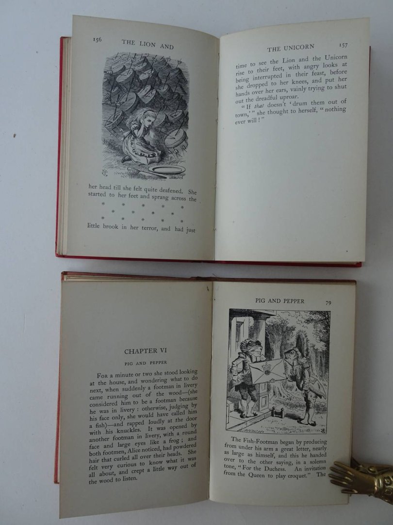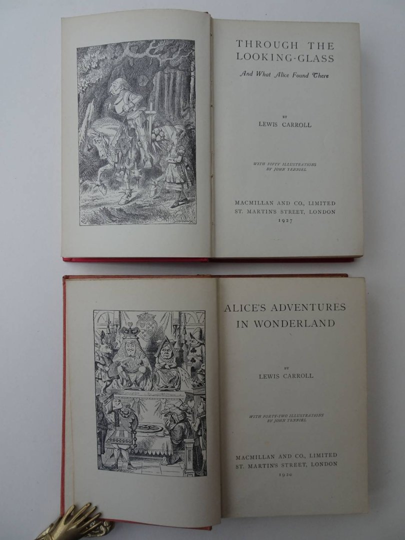 | Bijzonderheden: | 1920 & 1927; Macmillan and Co.; clothbound; 11x16 cm.; with 42 & 50 ills. in b&w by John Tenniel; 200 & X, 228 pp. |