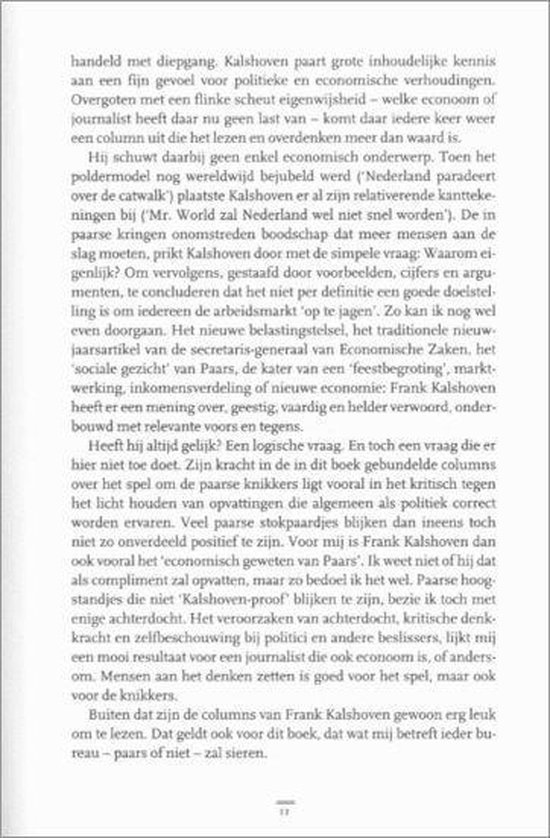 Vastberaden soms, maar halfhartig hebben twee kabinetten Kok de Nederlandse economie ingrijpend veranderd. Paars neemt zonder tranen afscheid van de gulden, kijkt vrolijk bij het eerste begrotingsoverschot sinds 1975, en viert de nieuwe winkeltijdenwet als een sociaal liberale overwinning op de conservatieve vakbonden en al even behoudende ondernemers.Frank Kalshoven staat erbij, kijkt ernaar en schrijft elke zaterdag een gezagehebbende column over deze Nieuwe Economie van Wim Kok. De bundeling van zijn beste columns van de afgelopen vier jaar leest als een ooggetuigenverslag van een stille economische revolutie. De bundel wordt ingeleid door een beschouwing van oud minister van Economische Zaken Hans Wijers.