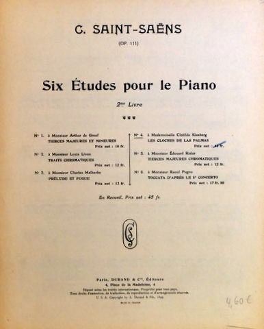 ![Saint-Saëns, Camille: - [Op. 111] Six études pour le piano. 12me livre. No. 2. Traits chromatiques + No. 4. Les cloches de Las Palmas Saint-Saëns, Camille: - [Op. 111] Six études pour le piano. 12me livre. No. 2. Traits chromatiques + No. 4. Les cloches de Las Palmas](https://images.boekwinkeltjes.nl/medium/FVbq2noIbeIjFZQarqBC.jpg)