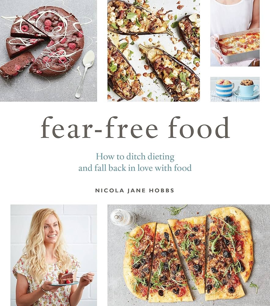 Food doesn’t need to be fat-free, sugar-free or gluten-free. It needs to be fear-free and guilt-free. Fear Free Food is a revolutionary diet and recipe book that inspires people to eat for health and enjoyment without fear or guilt.\n\nIn Fear-Free Food, nutritionist and Intuitive Eating Counsellor Nicola Jane Hobbs shows you how to break free from the toxic messages of diet culture, make peace with food and discover how to truly nourish yourself. Imagine having a peaceful relationship with food. One which leaves you feeling healthy, happy, and full of life. No anxiety or guilt. No calorie counting or cutting out food groups. No wasting energy worrying about what to eat or striving for a perfect diet that doesn’t exist. \n\nFilled with compassionate advice, mindset techniques and practical steps to help you trust your body and find food freedom, as well as science-backed information dispelling widespread nutrition myths, Fear-Free Food shows you how to replace dieting and deprivation with nutrition and nourishment. \n\nWith over 80 nutritious and delicious recipes to reignite your passion for eating, ranging from Italian Baked Eggs, Sweet Moroccan Falafel and Pan-fried Salmon Tikka, to Lemon Ricotta Pancakes, Honey Oat Banana Bread and Carrot Cake Cookies. Each recipe embraces the Fear-Free Food philosophy of balanced, fun, fear-free eating to inspire you to get creative in the kitchen and fall in love with food, your body and your life!