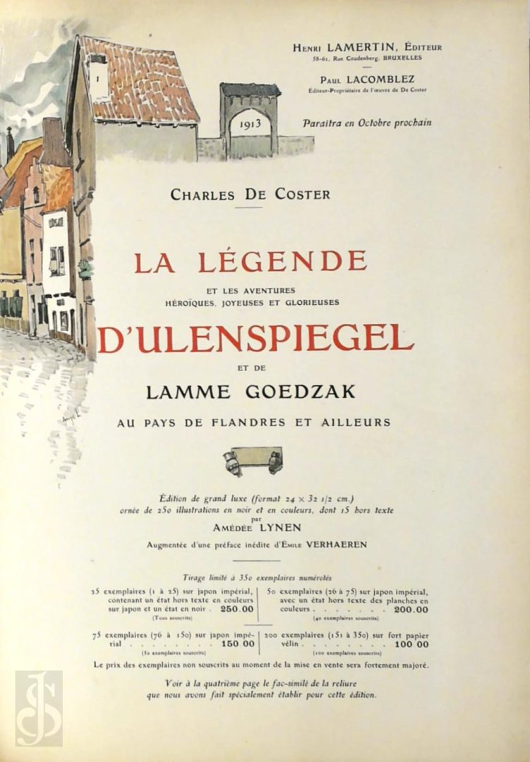 | Titel: | La Légende et les Aventures héroïques, joyeueses et glorieuses d'Ulenspiegel et de Lamme Goedzak au Pays de Flandres et ailleurs Illustrations de Amédée Lynen. Préface inédite de Emile Verhaeren |