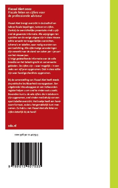 Fiscaal Alert brengt overzicht in de doolhof van talloze fiscale bepalingen, tarieven en cijfers. Dankzij de overzichtelijke presentatie vindt u pijlsnel de gewenste informatie. Alle wijzigingen ten opzichte van de vorige uitgave zijn in deze nieuwe editie verwerkt tot toegankelijke overzichten, schema’s en tabellen, waar nodig voorzien van een toelichting. Alle cijfermatige veranderingen zijn verwerkt naar de stand van zaken per 1 januari van het nieuwe jaar. U krijgt gedetailleerde informatie over de volle breedte van het belastingrecht en aanverwante gebieden. De cijfers zijn – waar mogelijk – in een reeks van vijf jaren opgenomen. Ook in deze editie zijn weer handige checklists opgenomen. Bij de samenstelling van Fiscaal Alert heeft steeds de praktische bruikbaarheid vooropgestaan. Een uitgebreide inhoudsopgave en een trefwoordenregister helpen u om snel te vinden wat u zoekt. Bovendien kunt u de vele cijfers die in tabelvorm zijn opgenomen, snel vinden met behulp van een apart tabellenoverzicht. Het boekje heeft een handzaam formaat, zodat u het gemakkelijk kunt meenemen. Zo hebt u met Fiscaal Alert alle feiten en cijfers letterlijk bij de hand! |