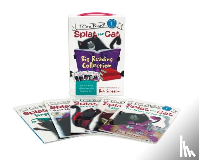 Annotatie A carry-along boxed-set collection of favorite Splat the Cat early reading stories includes Splat the Cat Sings Flat, Splat the Cat Takes the Cake, Splat the Cat and the Duck with No Quack, The Name of the Game and Good Night, Sleep Tight. Original. 60,000 first printing |