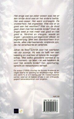 Johan de Boer schrijft over het overlijden van zijn zoontje. Hij was de helft van een tweeling en overleed al tijdens de zwangerschap. Met welke gevoelens worstel je op zo'n moment - en later - en wat betekent dit voor het andere kindje? Een openhartig, oprecht en nietsontziend verhaal. |
