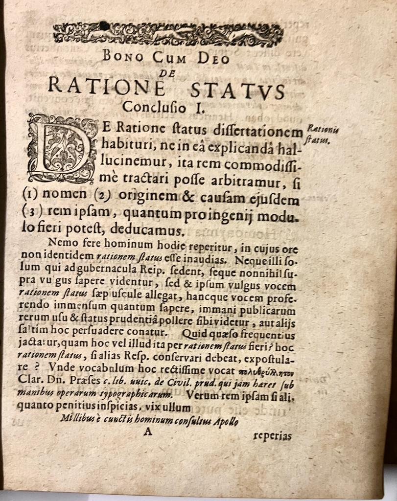 | Titel: | Dissertation 1651 I Dissertatio de ratione status [...] Helmstedt Henning Müller 1651. |