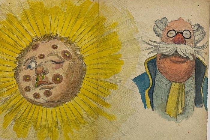 Anonymous. - Drawing, watercolour, satirical, ca 1980 | Two fac
