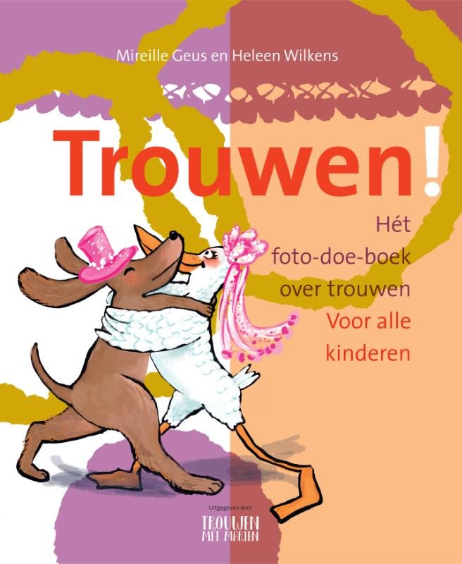 Trouwen! Hét foto-doe-boek over trouwen voor alle kinderen. Geschreven door Mireille Geus en geïllustreerd door Heleen Wilkens Naar idee van en in samenwerking met Marien Kuipers en uitgegeven door Trouwen met Marien.