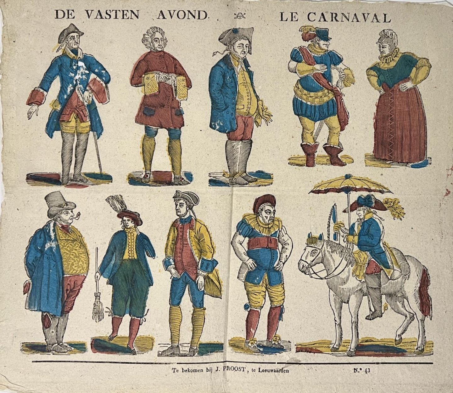 | Titel: | Antique hand colored popular print, woodcut | DE VASTEN AVOND - LE CARNAVAL, published ca. 1830, 1 p. |