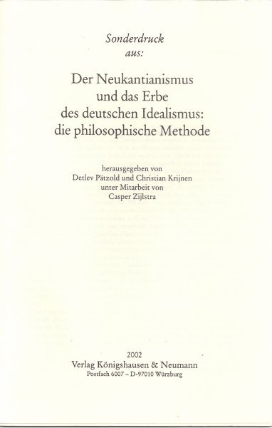 | Titel: | Der Neukantianismus und das Erbe des deutschen Idealismus: die philosophische Methode. (Sonderdruck aus...) |