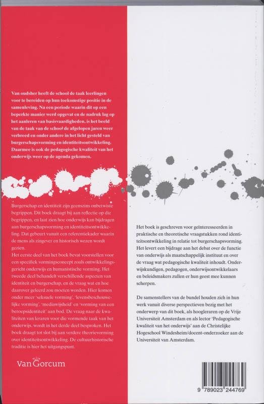 "Van oudsher heeft de school de taak leerlingen voor te bereiden op hun toekomstige positie in de samenleving. Na een periode waarin dit op een beperkte manier werd opgevat en de nadruk lag op het aanleren van basisvaardigheden, is het beeld van de taak van de school de afgelopen jaren weer verbreed en onder andere in het licht gesteld van burgerschapsvorming en identiteitsontwikkeling. Daarmee is ook de pedagogische kwaliteit van het onderwijs weer op de agenda gekomen. Burgerschap en identiteit zijn geenszins onbetwiste begrippen. Dit boek draagt bij aan reflectie op die begrippen, en laat zien hoe onderwijs kan bijdragen aan burgerschapsvorming en identiteitsontwikkeling. Dat gebeurt vanuit een referentiekader waarin de mens als zingever en historisch wezen wordt gezien. Het eerste deel van het boek bevat voorstellen voor een specifiek vormingsconcept zoals ontwikkelingsgericht onderwijs en humanistische vorming. Het tweede deel behandelt verschillende aspecten van identiteit en burgerschap, en de vraag wat en hoe daarover geleerd zou moeten worden. Hier komen onder meer seksuele vorming, levensbeschouwelijke vorming, mediawijsheid en vorming van een beroepsidentiteit aan bod. De vraag naar de kwaliteiten van leraren voor die vormende taak van het onderwijs, wordt in het derde deel besproken. Het boek draagt tot slot bij aan verdere theorievorming over identiteitsontwikkeling. De cultuurhistorische traditie is hier het uitgangspunt. Het boek is geschreven voor geïnteresseerden in praktische en theoretische vraagstukken rond identiteitsontwikkeling in relatie tot burgerschapsvorming. Het levert een bijdrage aan het debat over de functie van onderwijs als maatschappelijk instituut en over de vraag wat pedagogische kwaliteit inhoudt. Onderwijskundigen, pedagogen, onderwijsontwikkelaars en beleidsmakers zullen er hun geest mee kunnen scherpen. De samenstellers van de bundel houden zich in hun werk vanuit diverse perspectieven bezig met het onderwerp van dit boek, als hoogleraren op de Vrije Universiteit Amsterdam en als lector Pedagogische kwaliteit van het onderwijs aan de Christelijke Hogeschool Windesheim/docent-onderzoeker aan de Universiteit van Amsterdam."