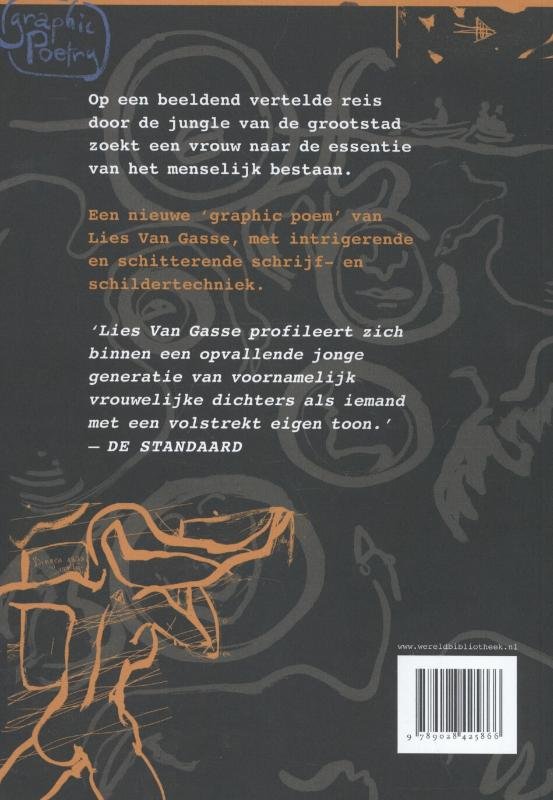 Met een adembenemende schrijf- en schildertechniek vertelt Lies Van Gasse in deze graphic poem hoe een vrouw in de jungle van een stad terechtkomt en daar op zoek gaat naar zichzelf: in de stad zelf, in de ander, in een gevecht. Haar pogingen brengen haar naar het strand, waar ze samen met haar zoektocht wordt uitgevlakt, tot er enkel vragen overblijven.Zand op een zeebed is een beeldend vertelde reis naar de essentie van het menselijk bestaan - naar het raadsel dat wij voor onszelf zijn, op zoek naar antwoorden die ons altijd weer ontglippen. Net zolang tot we onszelf ontvallen.