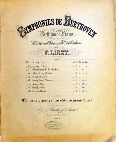 | Titel: | Symphonies de Beethoven. Partition de Piano, dédiée au Baron H. de Bülow par F. Liszt. No. 2 Re maj (D dur) |