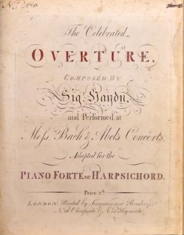 | Titel: | [Hob Ia: 7bis] The celebrated ouverture... performed at Mess. Bach and Abel`s concerts adapted for the piano forte or harspichord |