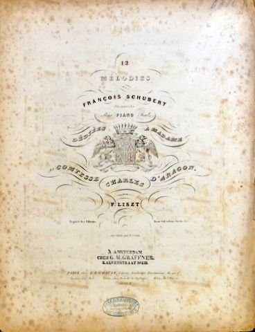 | Titel: | [R 243, 1 + 5] 12 Mélodies. transcrites Pour Piano Seul. par F. Liszt. Dédiées à Madame La Comtesse Charles D`Aragon. No. 2: Sois toujours mes seuls amours, No. 7: La mer calme |