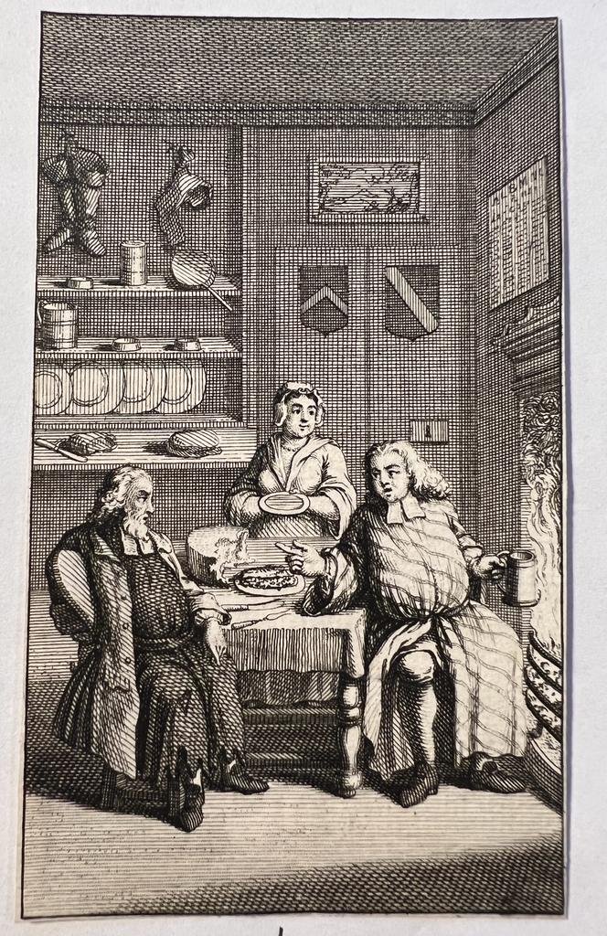![[Luyken, Jan]? - [Antique etching, gastronomy] View of a kitchen with cooking oven and a drinking person and some food on the table, published around 1687, 1 p.](https://images.boekwinkeltjes.nl/medium/sUKXK2rGSitSJHnmrxGP.jpeg)