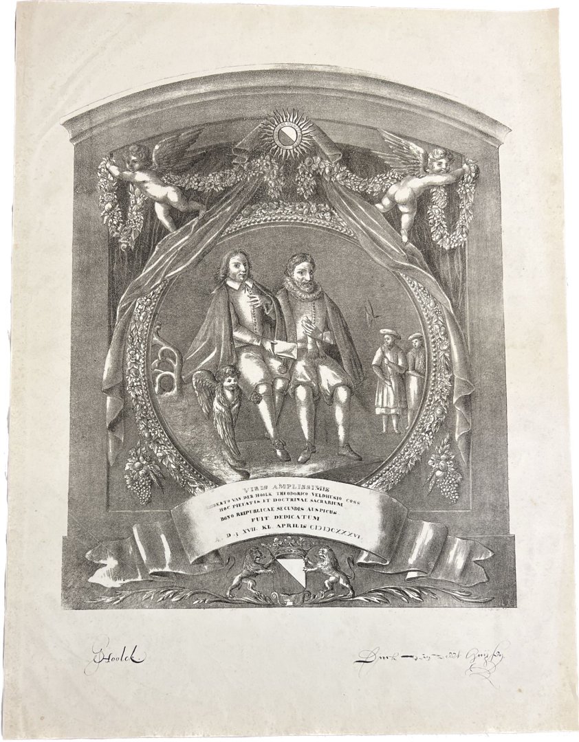 | Titel: | [Antique print, lithography, 20th century] Lithography of anonymous 19th century print of the portraits of Dirk Jacobsz. van Veldhuisen and Gijsbert Jansz. van der Hoolck, mayors (burgemeesters) in Utrecht in 1636, 1 p. |