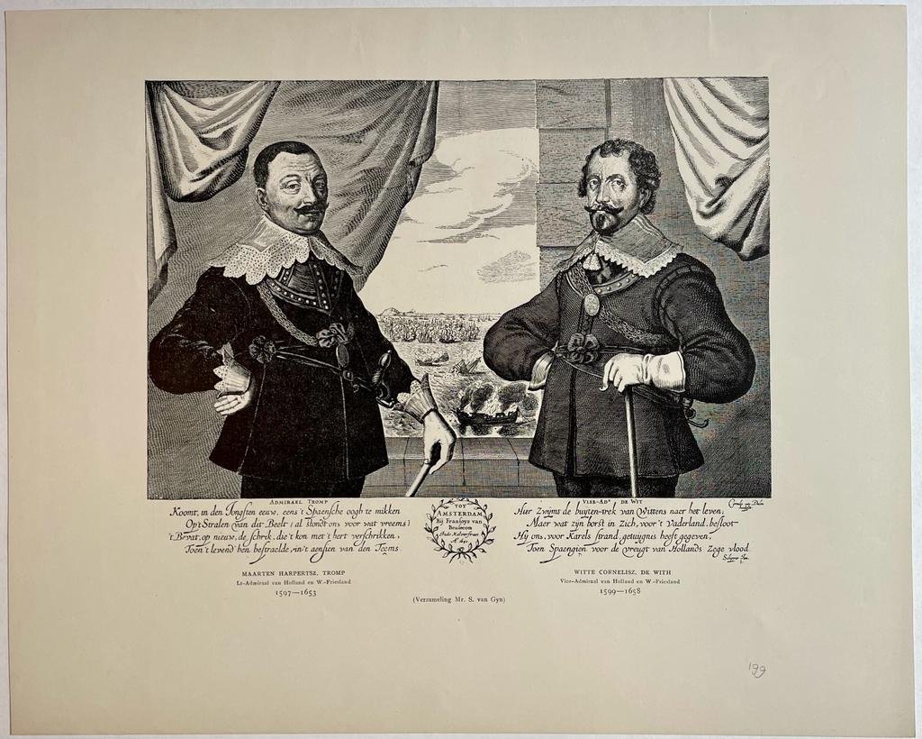![- [Reproduction, 120th century] Portrait print of admirals Maarten H. Tromp and Cornelisz. Witte de With, ca 1940-1945.](https://images.boekwinkeltjes.nl/medium/4eJFe3MhGbNa7wxkANZP.jpeg)