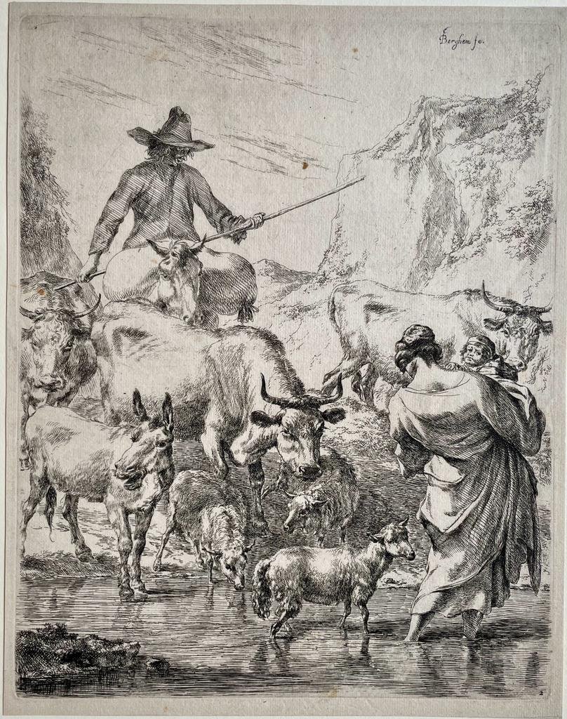 Nicolaes Berchem (1620-1683) - Antique print, etching I The Her