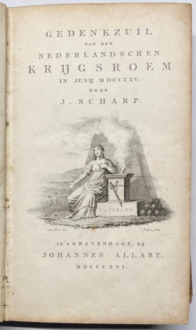 ![Scharp, Jan. - [Commemorative publication, 1816, Waterloo] Gedenkzuil van den Nederlandschen krijgsroem in Junij 1815, The Hague: J. Allart, 1816, (2), XIV, (60), 136, (20) pp.](https://images.boekwinkeltjes.nl/medium/3zn1rvEcvBKMCAi60Cfu.jpg)