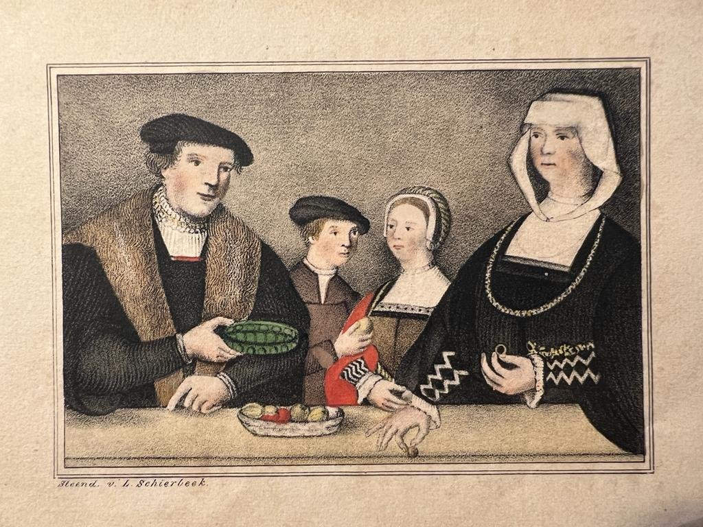 - [Antique lithography, gastronomy] Middle ages gastronomy scene, publishing date 19th century, steendruk van L. Schierbeek, 1 p.