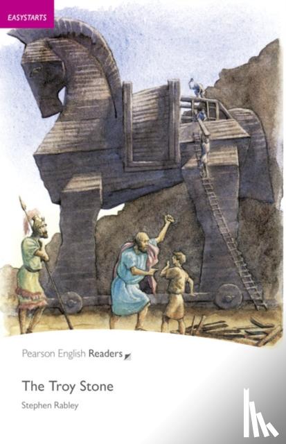 Annotatie Original / British English Mark Jackson is on holiday in Turkey. He visits the old city of Troy and finds a yellow stone. I know this stone,' he thinks. It comes from from ...' Suddenly Mark goes back in time. He can see a beautiful city, soldiers and a big wooden horse. Flaptekst Mark Jackson is on holiday in Turkey. He visits the old city of Troy and finds a yellow stone. ‘I know this stone,’ he thinks. ‘It comes from … from ...’ Suddenly Mark goes back in time. He can see a beautiful city, soldiers and a big wooden horse. |