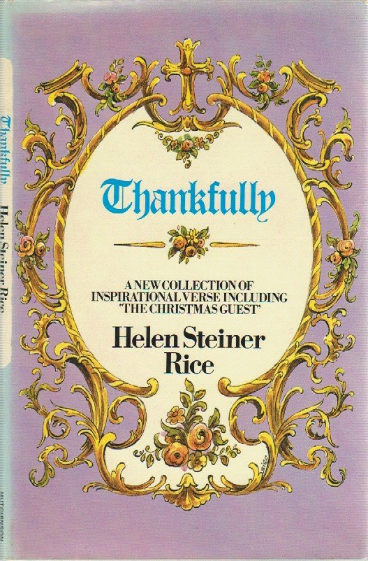 Things to be Thankful For `The good, green earth beneath our feet, The air ire breathe, the food we eat, Some vork to do, a goal to win, A hidden longing deep irithin That spurs us on to biggen things And helps us meet what each day brings, All these things and many more Are things we should be thankful.for .. And most of all our thankful prayers Should rise to God because he cares!' The Author This verse is typical of the moving poems which, in the four volumes already published, have brought messages of hope and consolation to the many readers of Helen Steiner Rice. This new volume of simpte verses will be eagerly welcorned by them, and all who know that what she has to say about prayer is in the language common to all who Beek that reality.