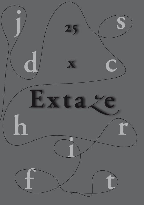 'Extaze' is een tijdschrift dat zich richt op Nederland en Vlaanderen en ook Zuid-Afrika en de Caraïben niet vergeet. Een tijdschrift met een rode stippellijn die niet dwingend door het nummer loopt. Essays die de inhoud van het blad diepte en perspectief geven, kenmerken die ook in de korte verhalen en gedichten terug te vinden zijn. Een tijdschrift met beeldende kunst ook, die zich associatief met de teksten verbindt. Ter gelegenheid van het 25ste nummer (op 1 maart 2018) verschijnt een extra jubileumuitgave '25 x Eztaze'. De redactie heeft aan alle beeldend kunstenaars die meewerkten aan de 25 Extazenummers gevraagd een in 'Extaze' gepubliceerde afbeelding af te staan voor '25 x Extaze'. Alle afgedrukte afbeeldingen zijn voort deze uitgave niet beschrijvend, maar associatief van tekst voorzien door romancier Hein van der Hoeven en dichter/schrijver Felix Monter. Met een Woord vooraf ('Zilver') van redacteur Cor Gout. Deze uitgave is mede tot stand gekomen met financiële steun van het Nederlands Letterenfonds.